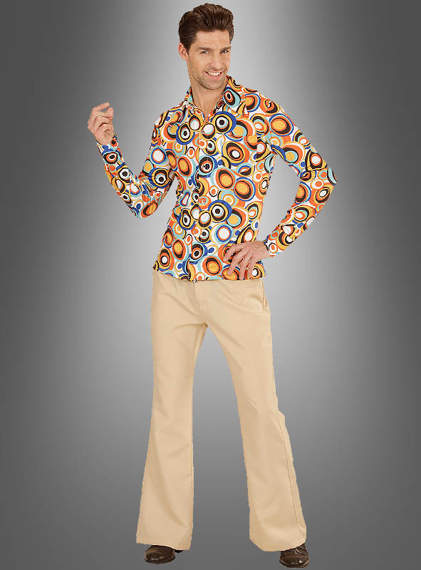 Für Damen haben wir die passende Bluse und auch eine Schlaghose mit Retrokreisen im Sortiment. So können Sie als Paar gemeinsam im coolen Retro Outfit zur Party gehen.