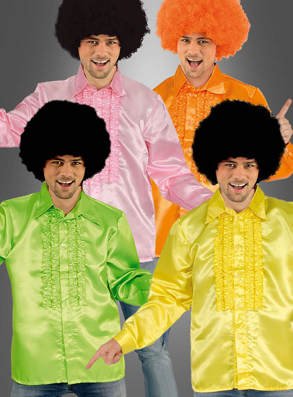 Das 70er Jahre Hemden für Herren in verschiedenen, schön leuchtenden Farben sind das perfekte Disco Outfit für Ihre Mottoparty. Egal ob zur Schlagerparty oder zum Thema 70er und 80er Jahre, mit diesem Hemd fallen Sie garantiert auf. Gerade in den 70er Jahren waren Rüschenhemden in der Disco total angesagt.