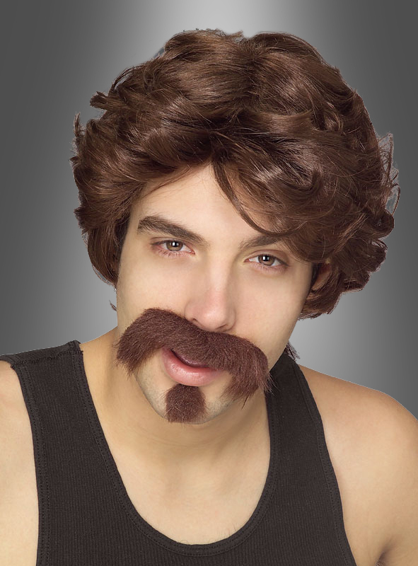Männerperücke im Stil der 70er und 80er Jahre inklusive Schnurrbart und Ziegenbärtchen. Verwandeln Sie sich in einen Frauenliebling der Siebziger. Für die Discoparty, Karneval oder Konzerte.