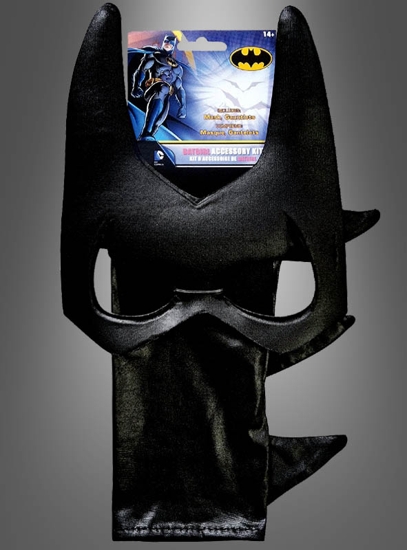Das Batgirl Kostümset besteht aus einer Augenmaske mit Fledermausohren und den schwarzen Armstulpen. An den Stulpen befinden sich seitlich schwarze Zacken, die mit Schaumstoff ausgepolstert sind.