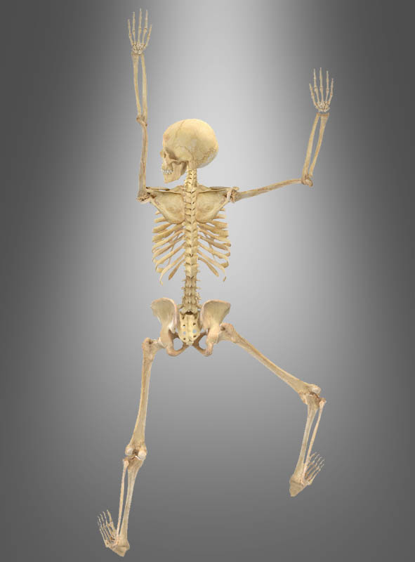 Das Beste kommt noch! Nach der Party können Sie dieses Skelett ganz kein und flach zusammenlegen, indem Sie die Arme und Beine auf die Rippen drehen. So kann das Skelett gut verstaut werden und ist jederzeit für die nächste Gruselparty bereit.