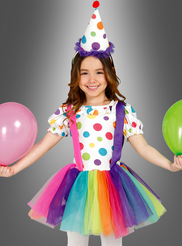 Das hübsche Kleidchen für Mädchen-Clowns, sowie der Hut sind für kleine Spaßmacher genau die richtige Verkleidung.