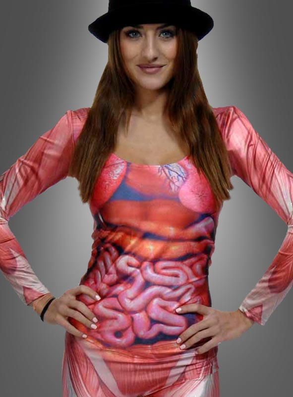 Die inneren Werte zählen! Mit diesem enganliegendem Catsuit Anzug für Damen sieht man das ganz deutlich. Muskeln und Organe liegen für jeden sichtbar offen. Ein super Spaß für Studentenpartys, Halloween und Karneval.
