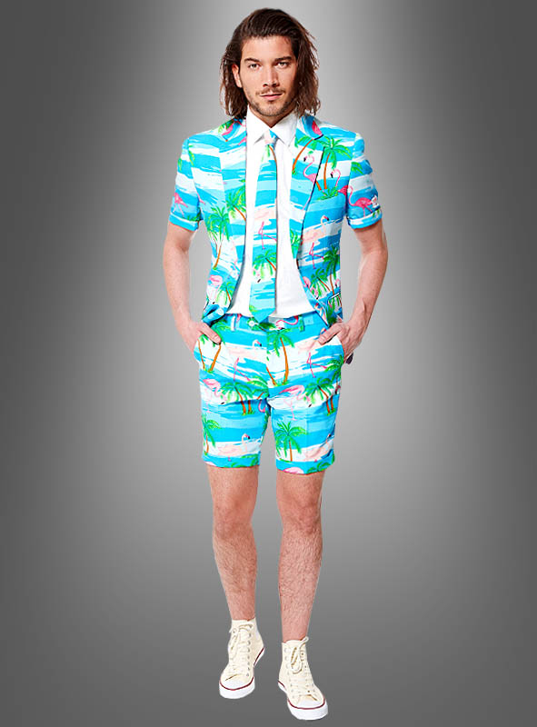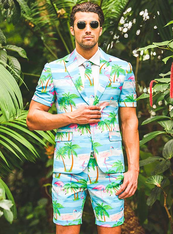 Im coolen Party Anzug Flamingo werden Sie immer einen kühlen Kopf bewahren. Auch wenn der Sommer noch so heiß ist. Mit diesem Deluxe OppoSuit Anzug stellen Sie jedes Hawaii Hemd in den Schatten.