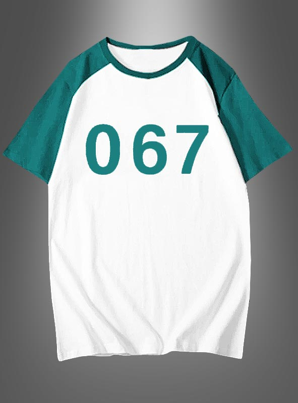 Das Spieler Nummer 067 T-Shirt für Damen ist nicht nur als Cosplay Kostüm ideal, sondern auch im Alltag tragbar. Der Stoff ist angenehm dehnbar. Die Raglanärmel sind grün, das Shirt selbst ist weiß. Vorne ist die Nummer 067 aufgedruck. Vielleicht gewinnen Sie mit dieser Glückszahl auch unendlich viel Geld und zocken alle ab. Zusammen mit dem Spieler Nummer 456 sind Sie auf jeden Fall ein unschlagbares Team.