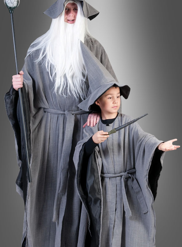 Das Zauberergewand besteht innen aus schwarzem Satinstoff und außen aus löchrig zerfetztem grauen Mullstoff. Der Hut ist aus dem gleichen Material. Selbstverständlich darf auch das Gürtelband nicht fehlen, um das Outfit zu komplettieren. Ein Zauberstab kann separat bestellt werden. Das Kostüm eignet sich ideal für Jungs als auch für Mädchen, denn es kann genauso gut eine Hexe darstellen.