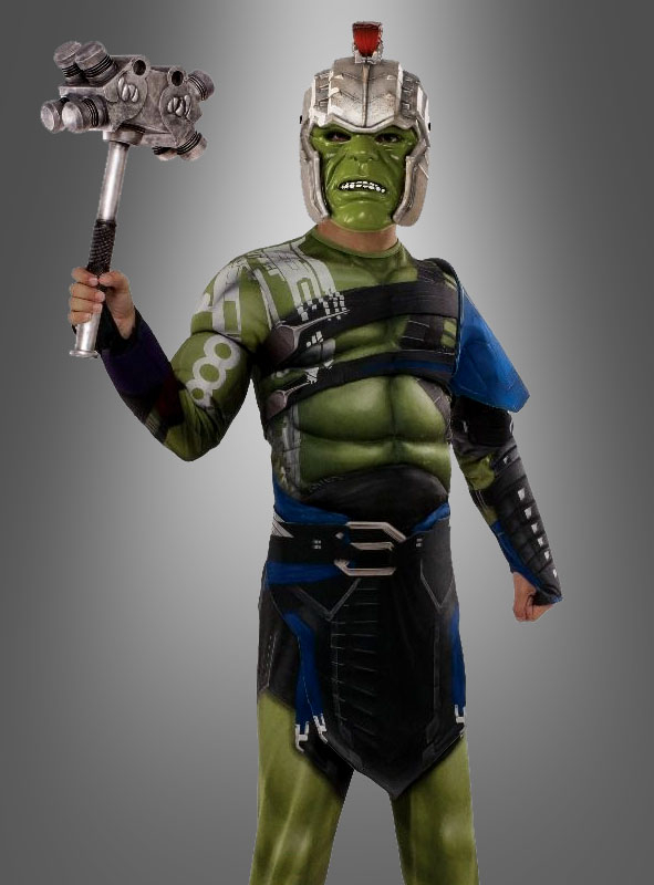 Mit dem Hulk Kostüm Gladiator für Kinder wirst du zum Kämpfer in der Arena auf dem Planeten Sakaar. Du bist der Champion. Ideale Verkleidung für Fasching oder den Superhelden Kindergeburtstag. Original Lizenzkostüm von Marvel zum Film Thor – Tag der Entscheidung.