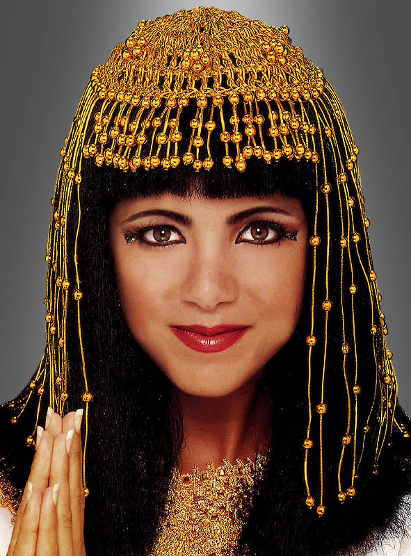 Goldener Kopfschmuck (ohne Perücke) aus Perlen für das königliche Haupt. Für ein Kleopatra Kostüm das perfekte Accessoire. Diese Perlenhaube kann über dem eigenen Haar oder einer Perücke getragen werden.