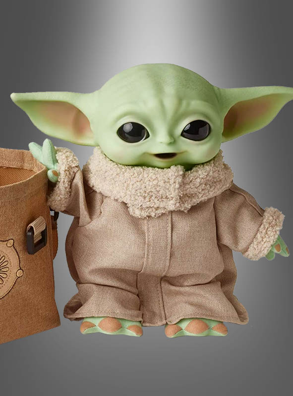 Der Star der Star Wars TV-Serie „Der Mandalorianer“ ist das Kind Grogu. Ein Kind von der gleichen Spezies wie Meister Yoda. Der Mandalorianer beschützt das Kind und wird deshalb vom Imperium gejagt. Die elektronische Figur in der Tasche ist ein Original Lizenz Produkt zur Disney Star Wars Serie.