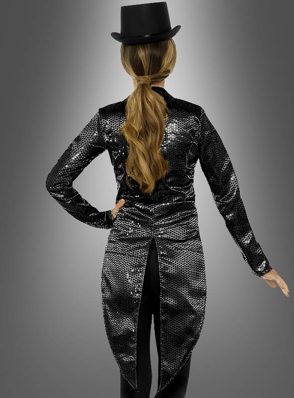 Die Show muss weitergehen. Mit dem schwarzen Pailletten Frack für Damen sind Sie stets elegant gekleidet für jeden Auftritt. Ob Sie nun als Zirkus-Dompteurin auftreten, beim Varieté oder auf der Schwarz-Weiß Mottoparty eingeladen sind, mit diesem Damenfrack machen Sie auf jeden Fall eine gute Figur. Auch ideal geeignet für Showtanzgruppen.
