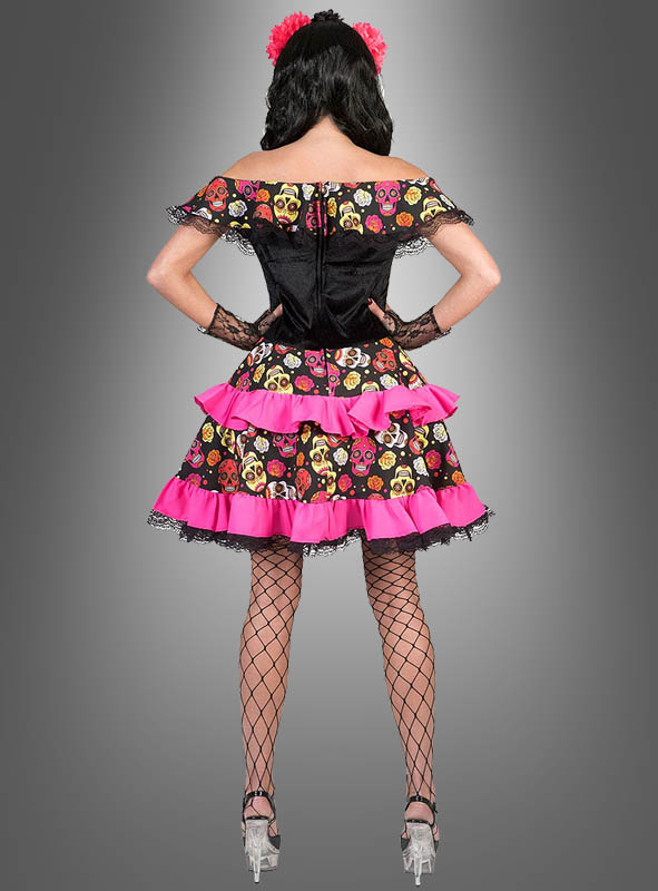 Das wunderschöne Tag der Toten Kleid Miranda besticht durch tolle Qualität und gute Passform. Das Damenkostüm kann zu Halloween, dem Tag der Toten und auch an Karneval getragen werden.